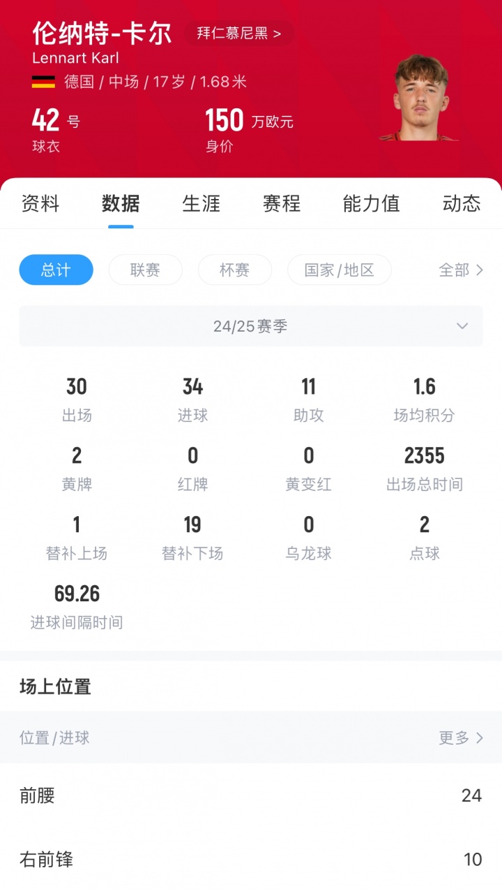 上赛季,他为拜仁后生队计较出场30次,孝顺34球11助攻。