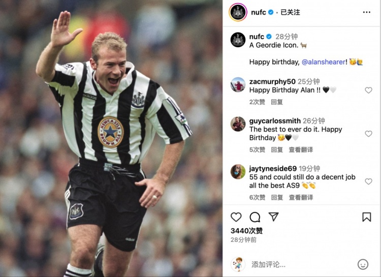 纽卡在社媒中配文写谈:一位泰恩河听说·🐐(Geordie 泰恩河:纽卡斯尔土著称谓),诞辰振作!