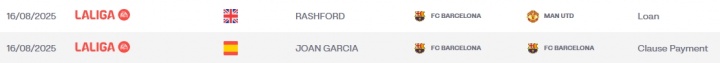 至此,巴萨今夏的两名主要新援门将霍安-加西亚和拉什福德齐完成了在西甲的注册。