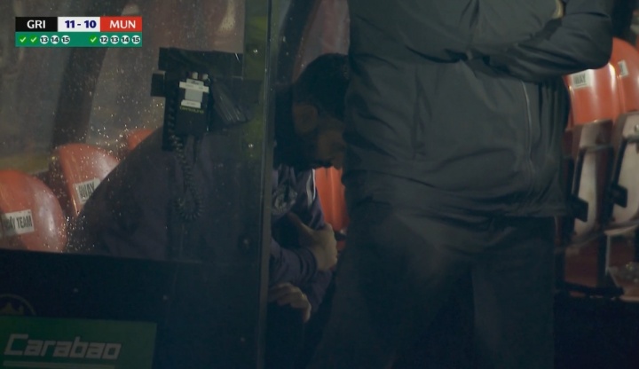 点球大战进行中时,镜头给到阿莫林,阿莫林坐在熟练席上,他低着头莫得看向场上。