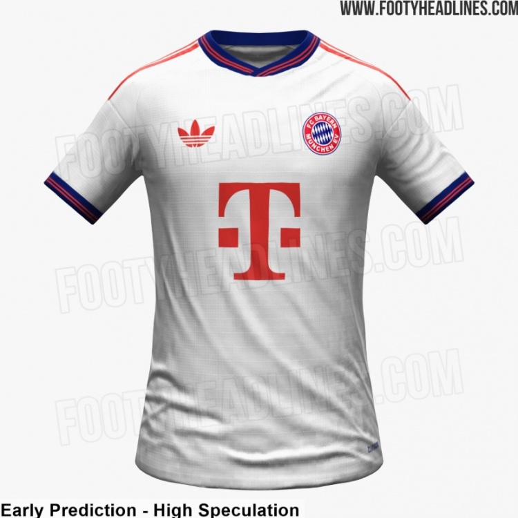 外媒浮现拜仁26/27赛季客场球衣:白色主色彩,EV队徽追想