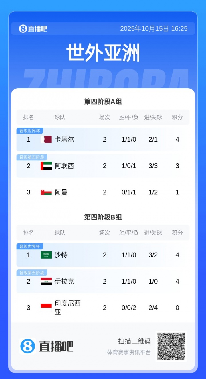 10月15日讯 世初赛亚洲区第四阶段边界,该阶段的两个垄断国度卡塔尔和沙特均告成晋级,两队主场作战加之能比其他球队多休息3天的安排,遭到了其余国度的集体炮轰。