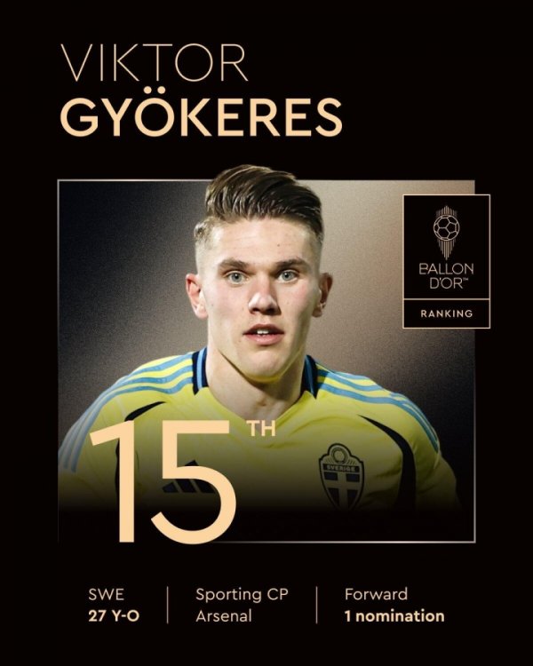 北欧锋霸首登英超!金球奖第15名:约克雷斯,糊口初次取得提名