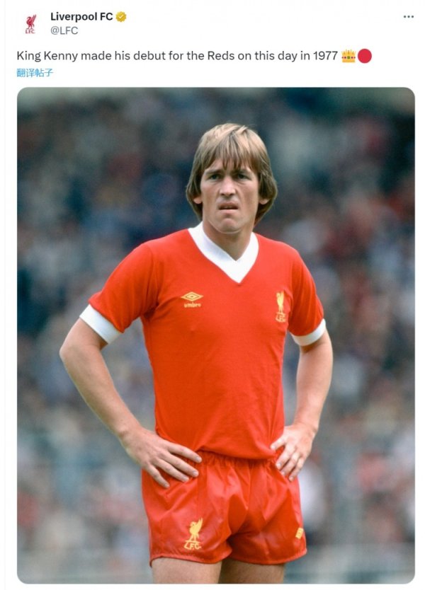 外传!达格利什赤军首秀48周年,利物浦官方社媒问候
