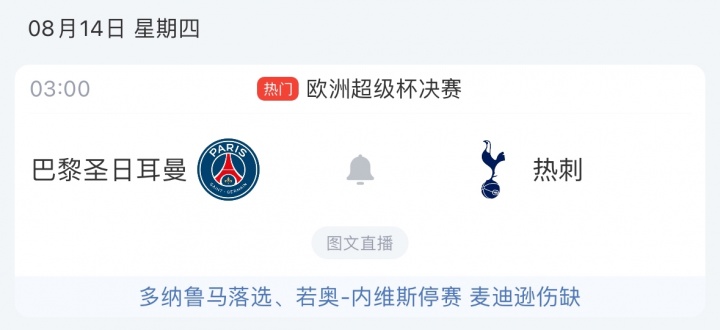 08月13日讯 明晨3:00,欧洲超等杯,巴黎圣日耳曼vs热刺。赛前,数据网站opta展望了欧超杯的胜者。
