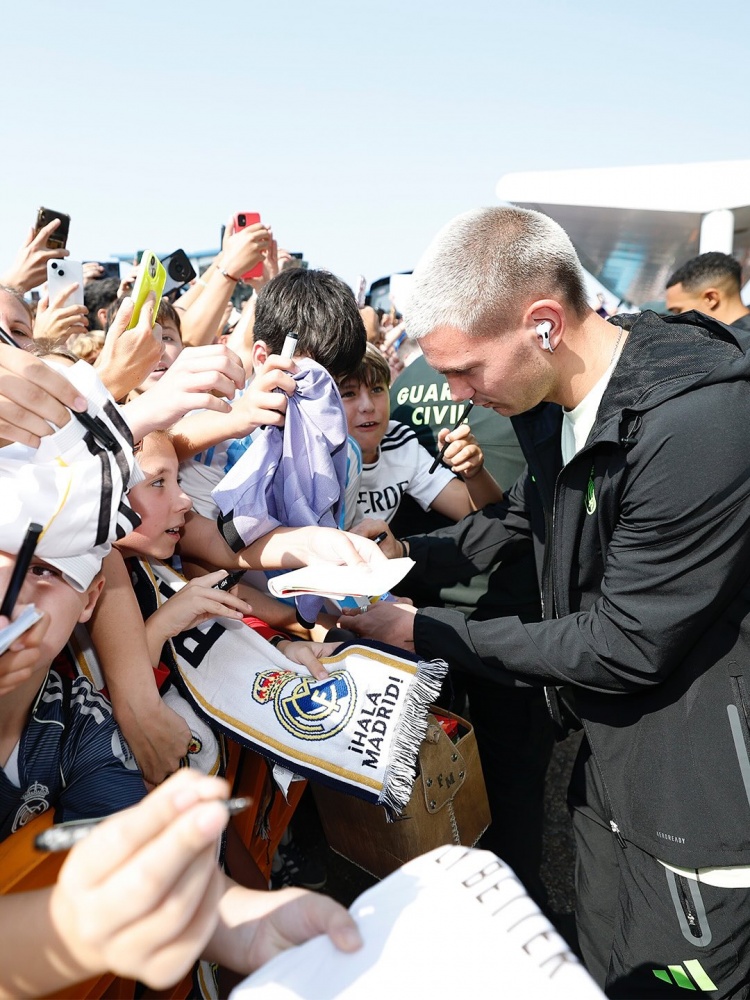 皇马球员们照旧抵达奥维耶多,准备参预这场比赛,他们受到当地球迷的激烈迎接,皇马官方社媒晒出球员们签名的像片。