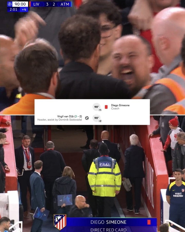 在9月18日与利物浦的比赛中,西蒙尼与别称在90分钟内执续黑白他的利物浦球迷发生了突破,随后吃到红牌。