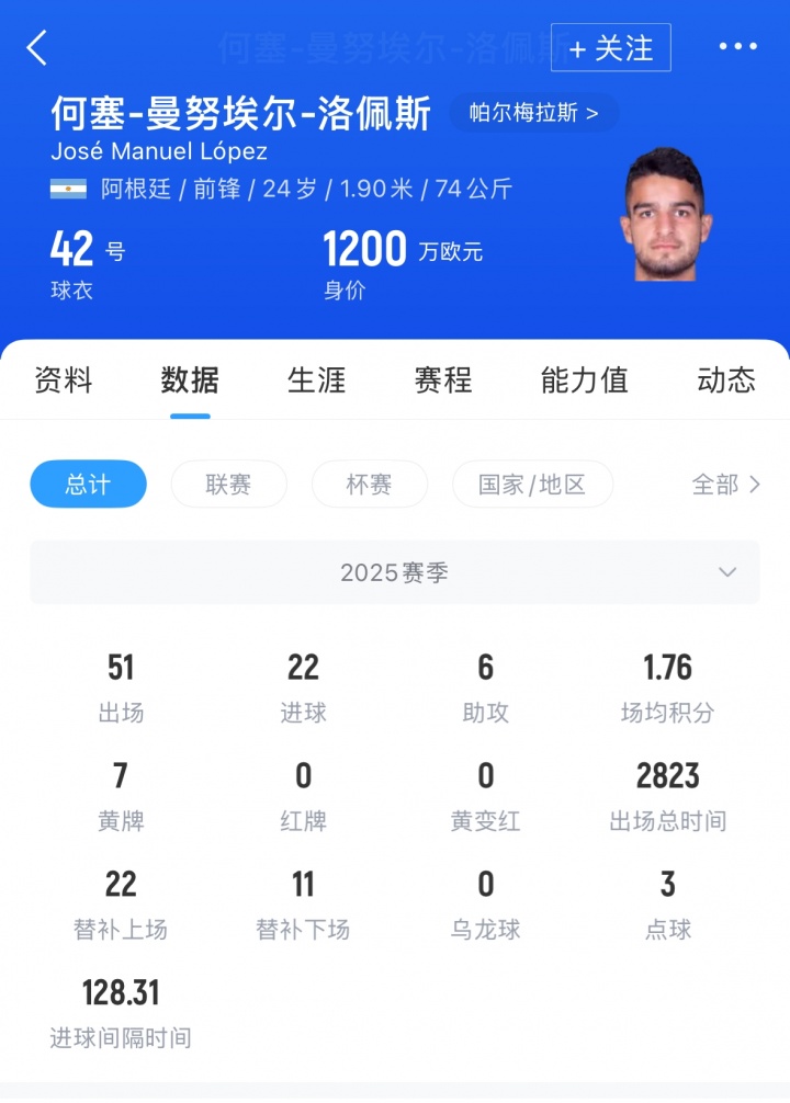 何塞-洛佩斯现年24岁,身高190司职时尚,德回身价1200万欧。球员现着力于巴甲帕尔梅拉斯,2025赛季代表帕尔梅拉斯各项赛事出场51次,打进22球并送出6次助攻。