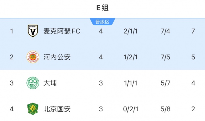11月06日讯 亚冠二级E组第4轮,麦克阿瑟2-1打败河内公安,4轮2胜1平1负积7分升至小组第一。国安vs大埔的比赛将至今晚20:15开赛。