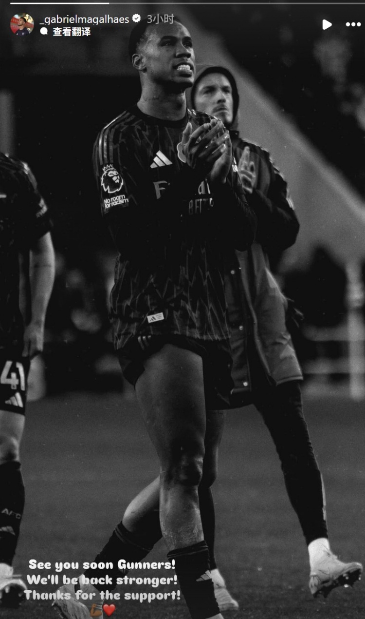 补时遭绝平,加布里埃尔社媒饱读舞球队:咱们会以更强姿态归来!