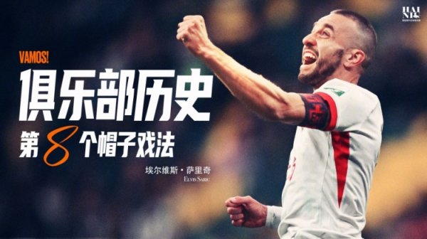 萨里奇完成帽子戏法,成为队史第八位孝敬帽子戏法的球员