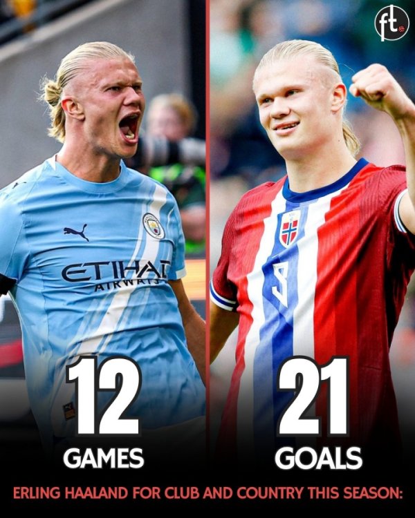 10月12日讯 本轮世初赛挪威5-0横扫以色列,哈兰德献技帽子戏法,将个东说念主本赛季的进球数升迁到21粒。 哈兰德本赛季各项赛事代表俱乐部和国度队出战12场,仅对阵热刺时哑火,收货单为12场21球3助,场均造2球! 哈兰德本赛季于今数据 🔵 v 狼队:⚽️⚽️ 🔵 v 热刺:❌ 🔵 v 布莱顿:⚽️ 🌍 v 芬兰:⚽️ 🌍 v 摩尔多瓦:⚽️⚽️⚽️⚽️⚽️🅰️🅰️ 🔵 v 曼联:⚽️⚽️ 🔵 v 那不勒斯:⚽️ 🔵 v 阿森纳:⚽️ 🔵 v 伯恩利:⚽️⚽️🅰️ 🔵 v ......查看更多