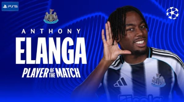 1过东谈主收效1关节传球,伊兰加当选纽卡4-0圣吉罗斯一役全场最好