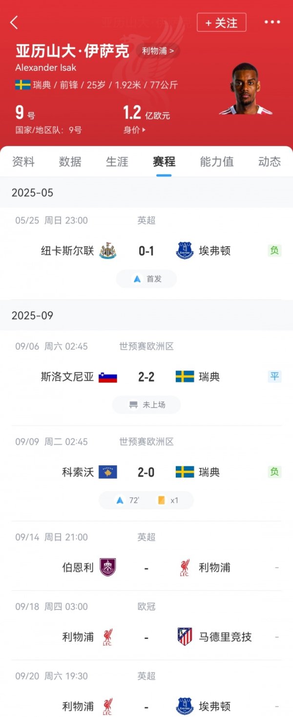 09月14日讯 利物浦vs伯恩利首发出炉,1.44亿新援伊萨克莫得参预名单。 伊萨克休赛季缺席了沿途纽卡的合练,也莫得参加球队的季前赛。参预新赛季后,伊萨克只在瑞典0-2科索沃的比赛中替补登场,踢了18分钟。 伊萨克上一次首发+打满全场照旧是5月25日纽卡对阵埃弗顿的比赛。 踢完伯恩利,利物浦将在主场迎来马竞和埃弗顿的挑战。......查看更多