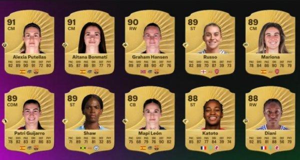 EAFC26女足球员评级top10:巴萨包揽前三,枪手里昂各两东谈主