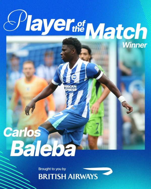 3次阻碍全场最高,巴莱巴当选布莱顿1-1富勒姆一役队内最好