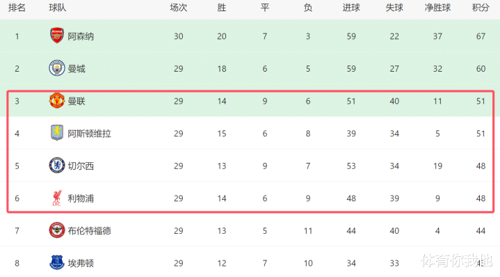 本赛季,英超9队出战欧战,结果都杀进16强,因此英超很可能再次拿到5个欧冠名额。不过尽管如此,欧冠席位的竞争依然激烈,曼联虽然目前排名前三,但是他们也不敢保证,赛季结束后肯定能获得欧冠资格。
