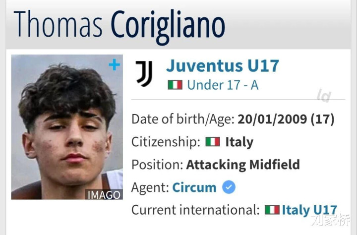 (小资料:截至目前,科利里亚诺共为尤文U17出场23次,攻入13球助功 16次)