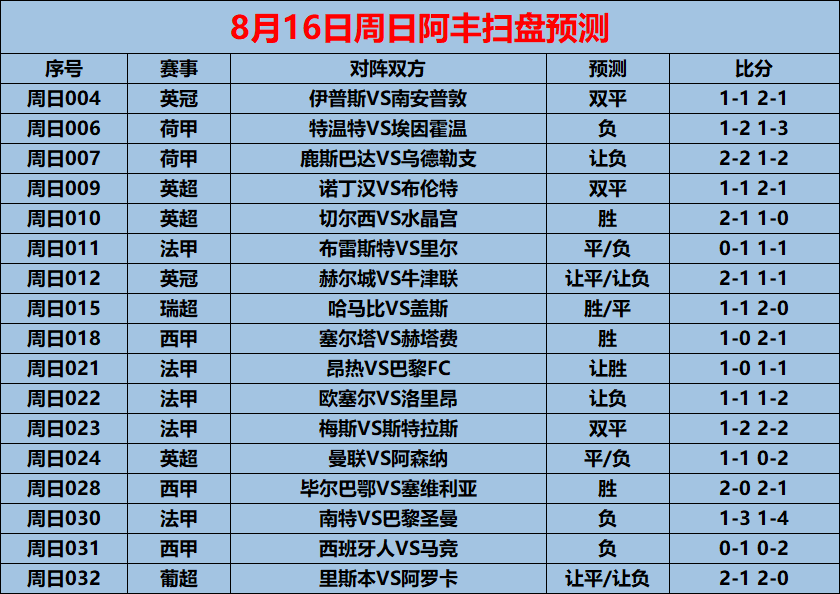 8/17周日赛事先瞻: 法甲: 欧塞尔VS洛里昂(内附17场掂量)