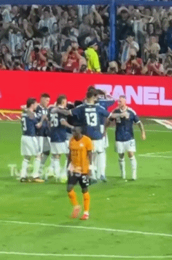 看到这一幕,马丁内斯冲过来推了奥塔门迪一把,罗梅罗更是推着奥塔门迪向前走了10米。帕雷德斯、麦考利斯特也先后与奥塔门迪击掌,梅西同样走过来与奥塔门迪击掌。