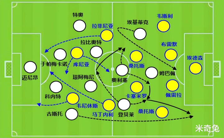 与法国那场赛前热身 赛,可以很好地展现安切洛蒂的世界杯赛 A计划。球队安排了4名前场球员先发,靠前的库尼亚和韦尼休斯是给队友做嫁衣的,靠后的马丁内利和拉菲尼亚才是真正的杀手。