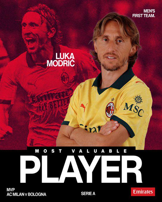 AC米兰官方:莫德里奇打进意甲活命首球并当选MVP
