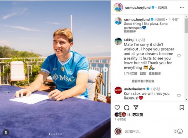 直播吧9月2日讯 霍伊伦更新社媒动态,晒建立穿那不勒斯球衣的像片。 霍伊伦今夏从曼联租出加盟那不勒斯,契约中包含有条件的强制买断条件。 霍伊伦社媒晒建立穿那不勒斯球衣、面带笑貌的像片,配文:“还好我可爱披萨,我是那不勒斯东说念主。”......查看更多