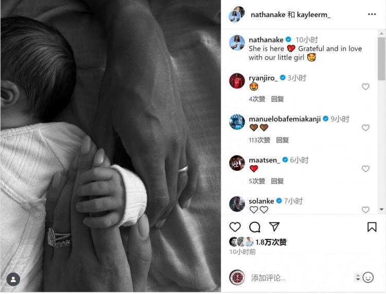 8月8日讯 曼城后卫阿克更新社媒动态,告示儿子降生。