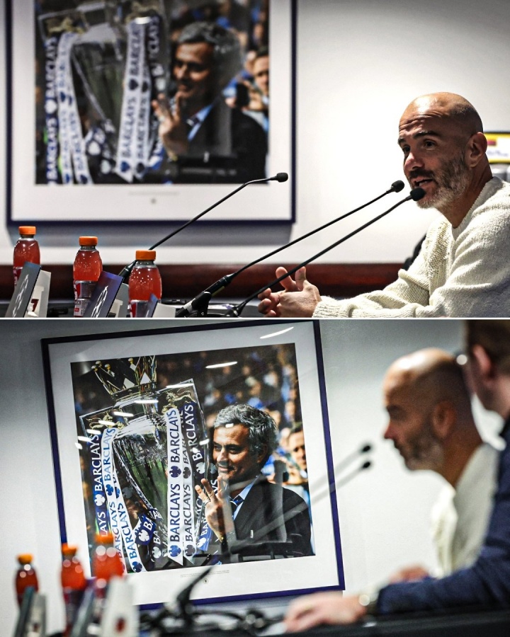 别传回家!马雷斯卡发布会现场,墙上的像片恰是穆帅英超第3冠