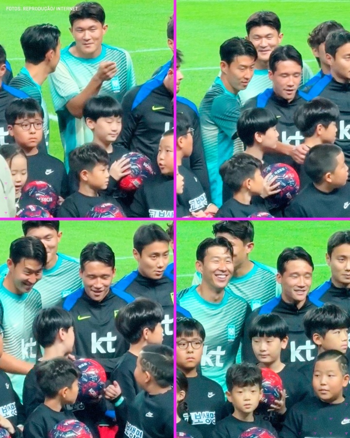 可人😋对阵巴拉圭合影行径,孙兴慜与SONNY发型的小球迷打呼唤