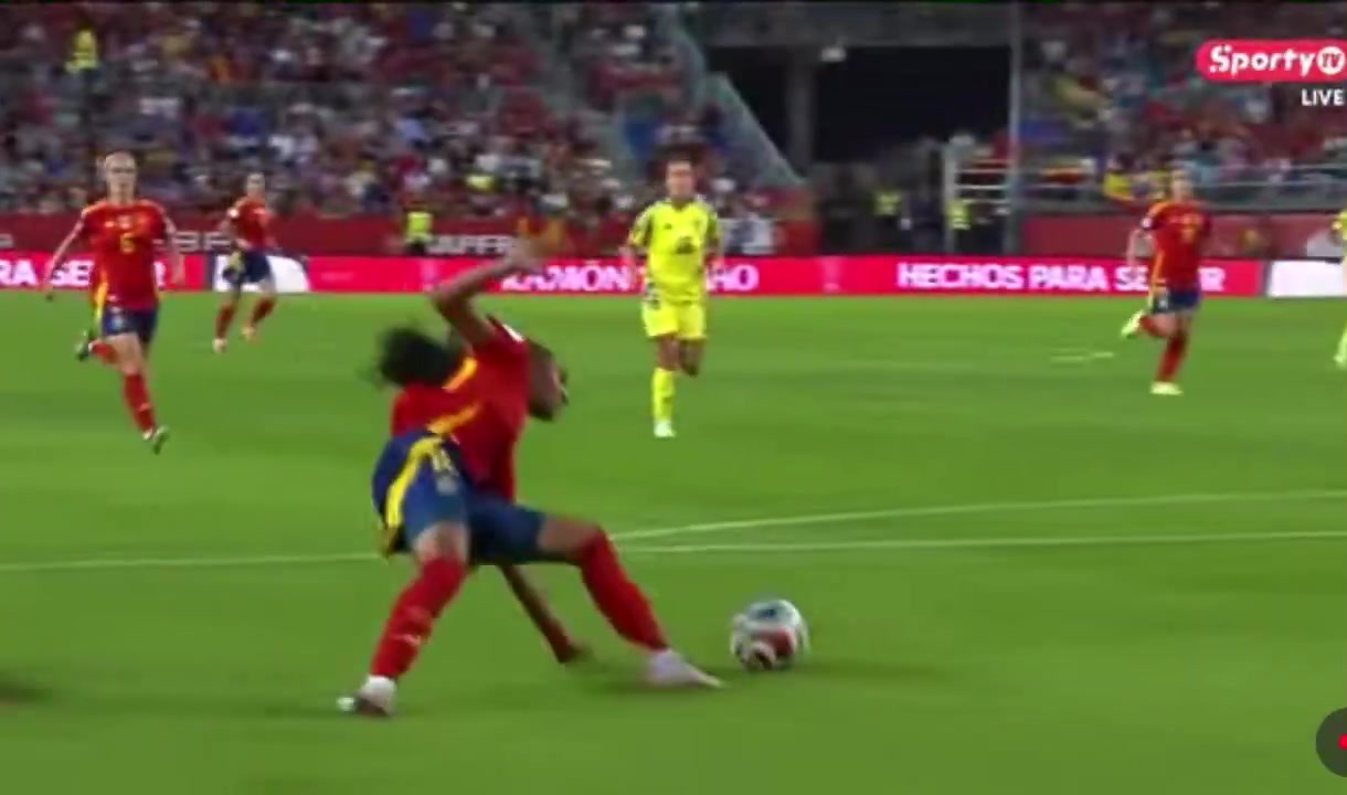 10月25日讯 西班牙女足在女足欧国联半决赛首回合中主场4-0大捷瑞典,但在比赛中遭逢了令东谈主担忧的一幕。巴萨前卫萨尔玛-帕拉略洛在比赛进行到第25分钟时,因一次禁区内的跌倒导致左膝受伤,不得不哭着离场。