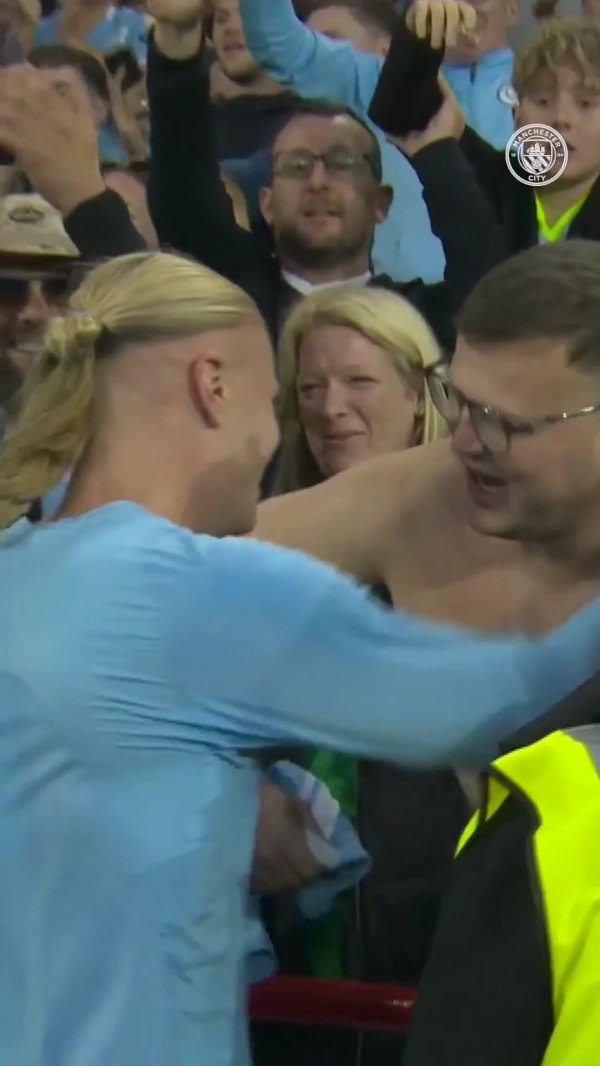亲切互动!哈兰德赛后送球衣,球迷欢乐拥抱+献吻