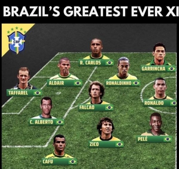 招供吗?外媒评巴西队史最好11东谈主阵:贝利大罗小罗领衔 无内马尔
