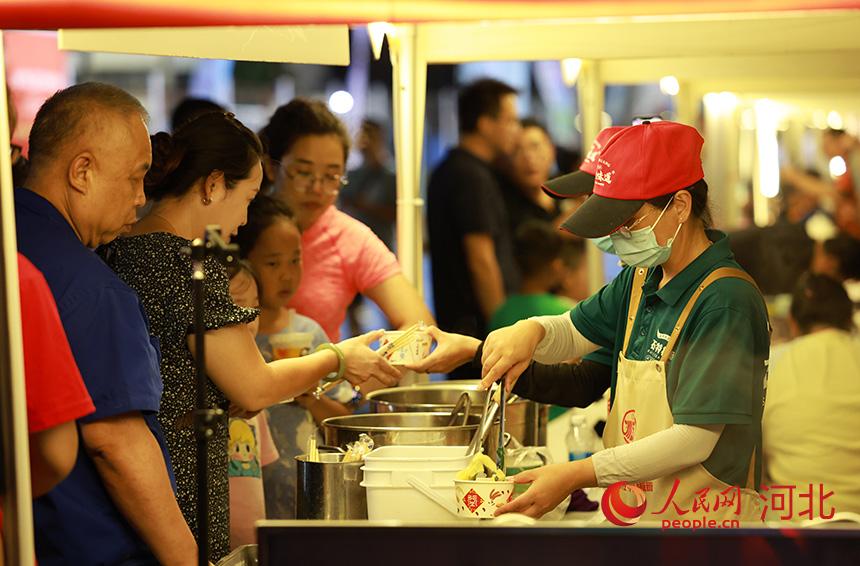 “足球市场”板面窗口,源源链接的不雅众列队试吃石家庄特质好意思食。东谈主民网记者 李兆民摄