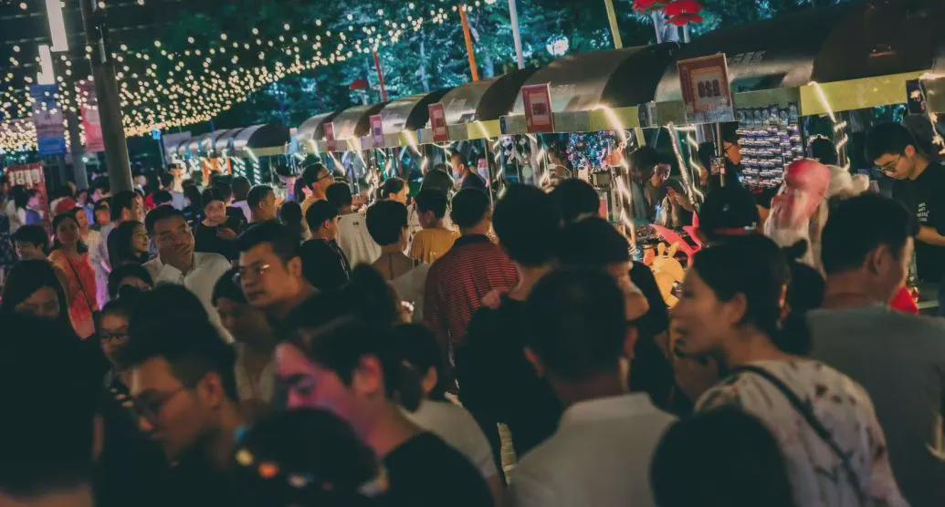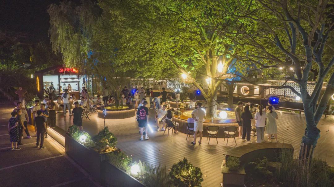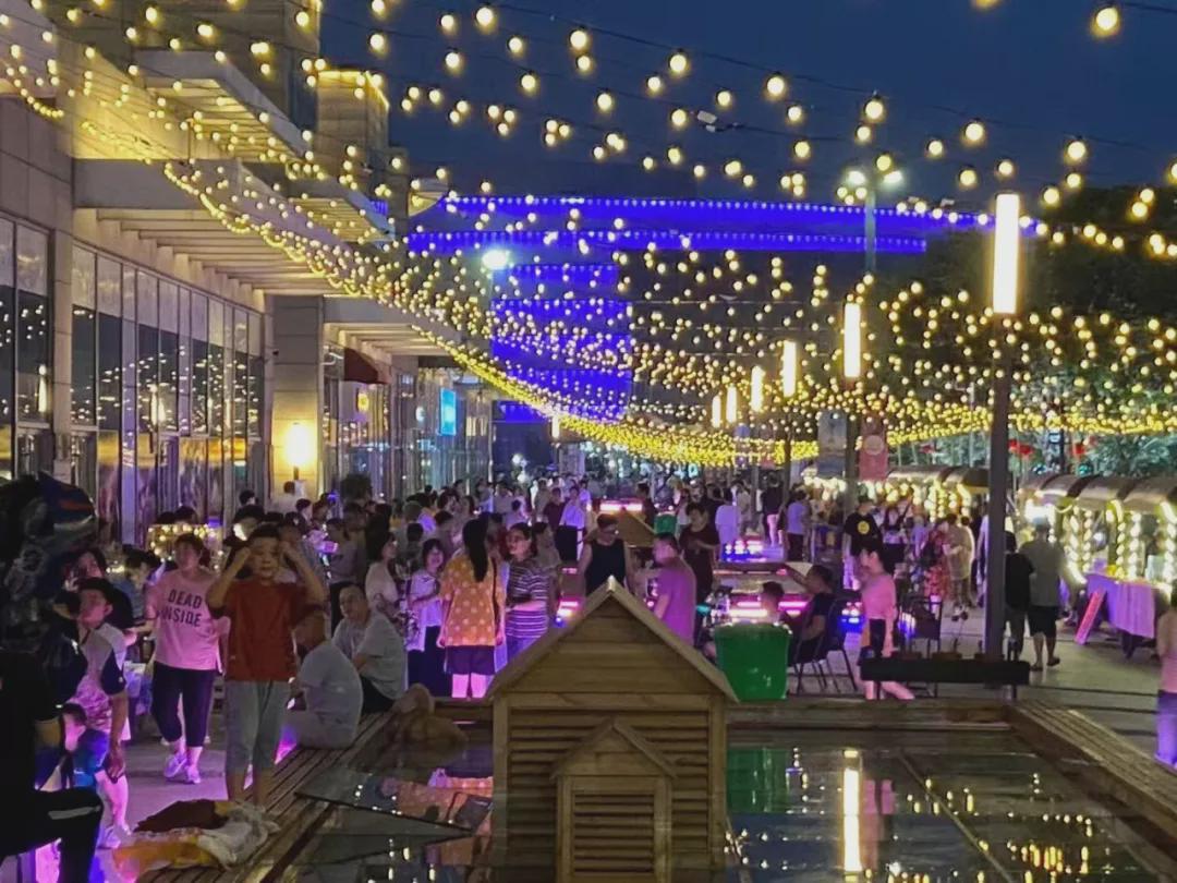 夜晚流动的灯光,东说念主声欣慰焰火喧