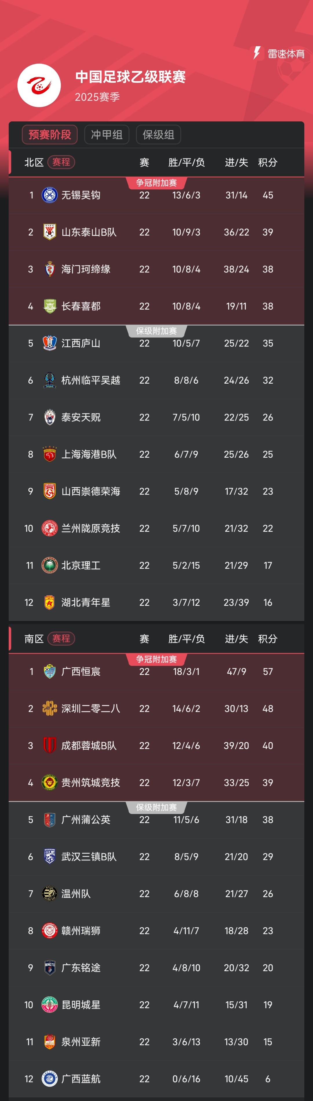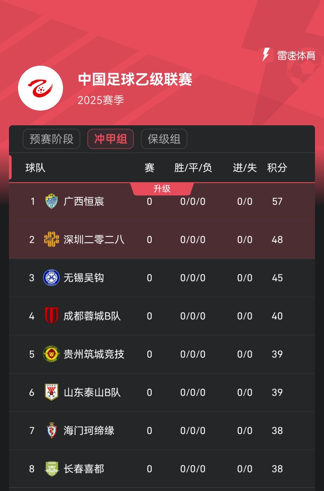 雷速体育8月4日讯 昨日,2025中乙联赛初赛阶段22轮比赛整个适度,广西恒宸、山东泰山B队、成齐蓉城B队等8支球队参加冲甲组,另外16支球队参加保级组。