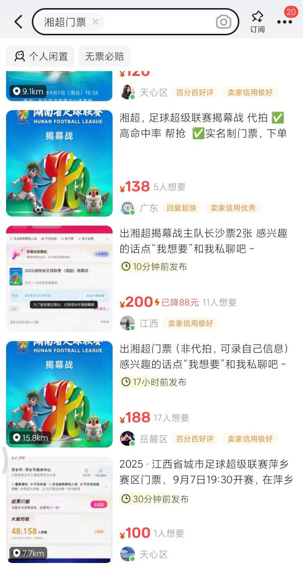 二手平台现湘超揭幕战百元转让票,官方领导:买到票时个东谈主信息即锁定,切勿深信黄牛