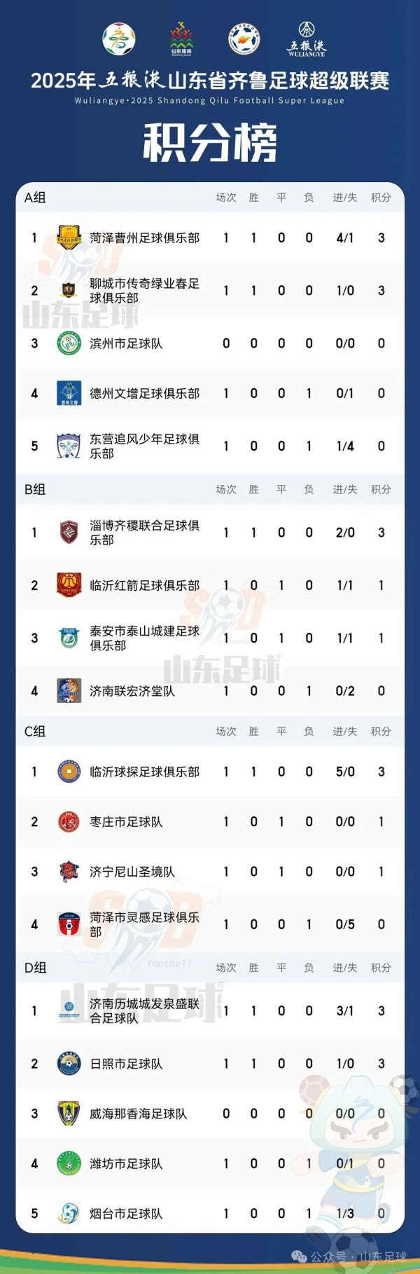 2025年山东省王人鲁足球超等联赛首轮全部赛事已于9月21日完赛跟着各场次比赛成果尘埃落定首阶段的积分榜与弓手榜更新 从积分榜来看 D组首轮较量中日照队凭借高效发扬于客场以1-0的比分打败潍坊队到手斩获联赛首胜的同期也获得了负责的3分 同组的济南历城城发泉盛解除足球队 凭借净胜球上风 暂居小组积分榜首位 日照队紧随后来位列小组第二 弓手榜方面 多名球员在首轮比赛中展现出强盛的迫切火力日照队朱家贤凭借要害进球匡助队列拿下首胜 暂居弓手榜前线 跟着赛事鼓动日照队的参赛声势长久是远......查看更多